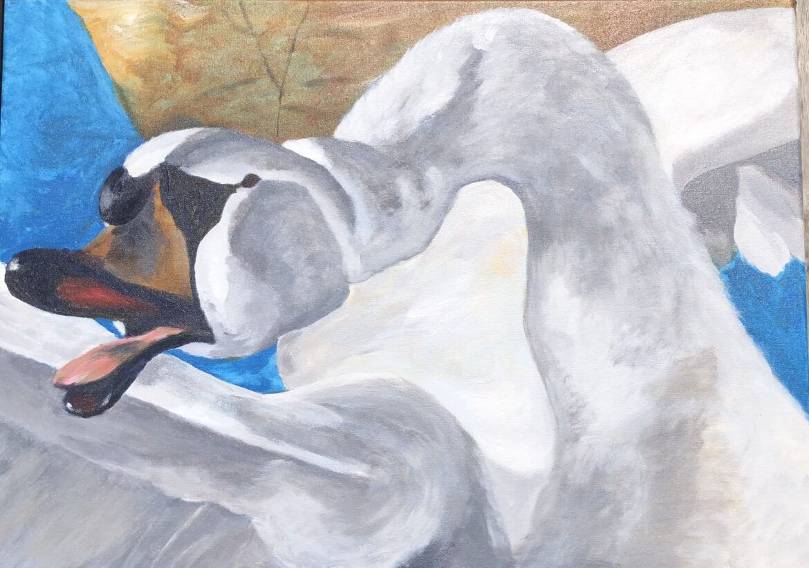 Eigen interpretatie, uitsnede, van de zwaan van Asselijn.Maat 40 x 50 cm.