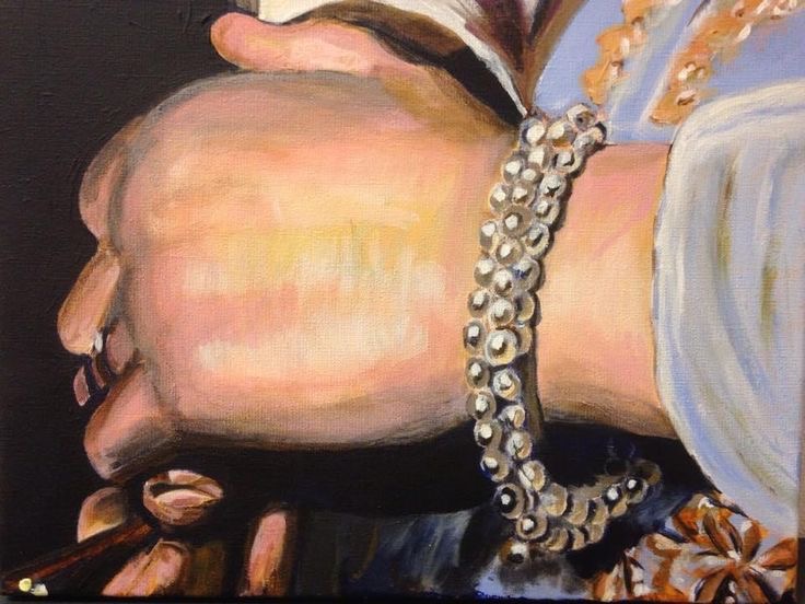 Detail van het originele werk “meisje met de veer”. Geëxposeerd in het Cultureel Centrum te Nederhorst den Berg in 2016.